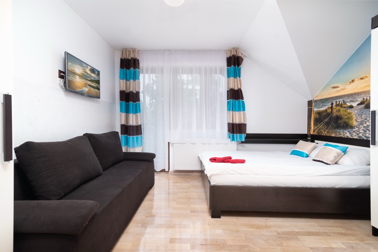 - Pokoje 1-2-osobowe (kanapa dwuosobowa).